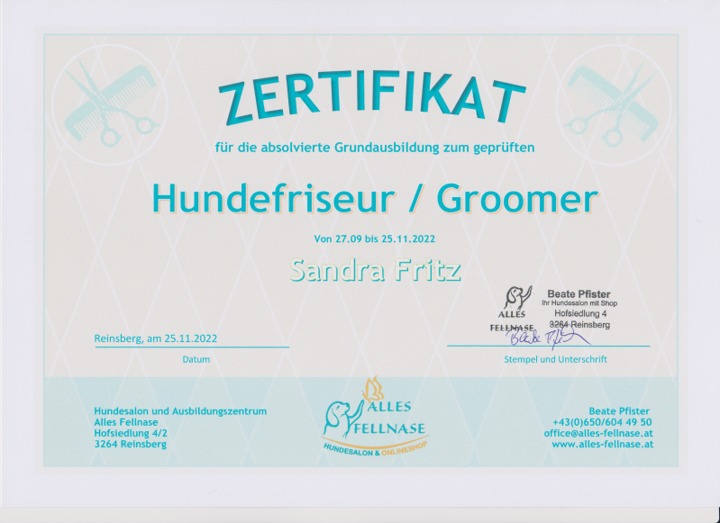 Ich bin gelernte Friseurin und dachte mir, ich könnte mein erlerntes Handwerk, mit meiner Leidenschaft zu Hunden verbinden und so startete ich im Herbst 2022 mit der Ausbildung zur Groomerin.
